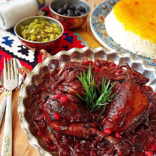 میرسیم به یک شکمپر خوشمزه دیگر که کاملا گیاهی است و بسیاری آن را میپسندند. برای طبخ این غذا به بادمجان، گوجهفرنگی، پیاز، گردو، سیر، سبزی شامل چوچاق و اناریجه یا سبزی معطر، رب انار، نمک و فلفل و زردچوبه، روغن و خلال بادام احتیاج دارید. این غذا در عین سادگی بسیار خوشمزه است و معمولا با برنج یا نان سرو میشود.