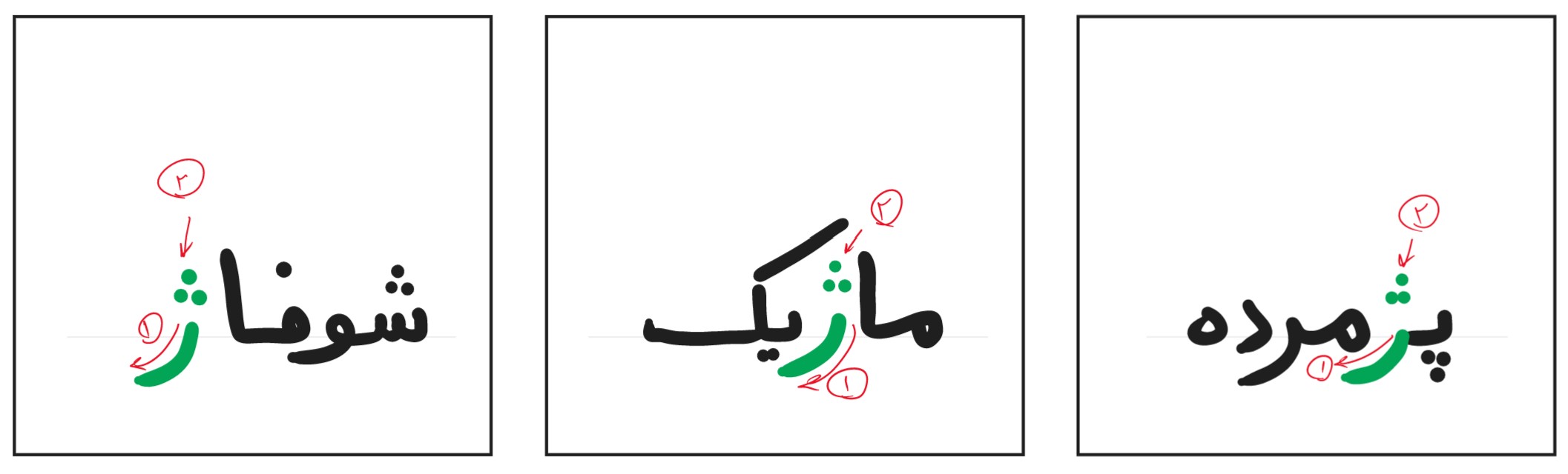 نحوه نوشتن حرف "ژ"